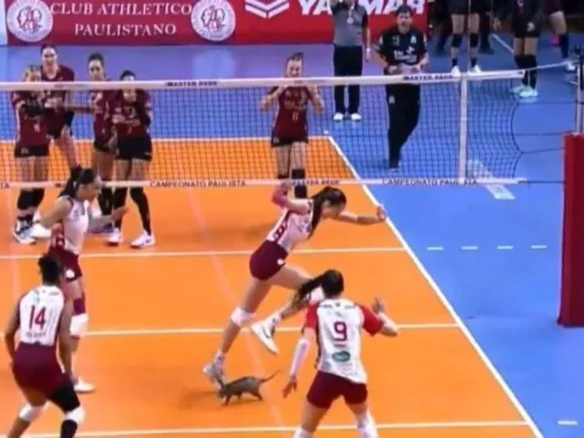 Gambá invade quadra durante partida da semifinal do Campeonato Paulista de vôlei; veja
