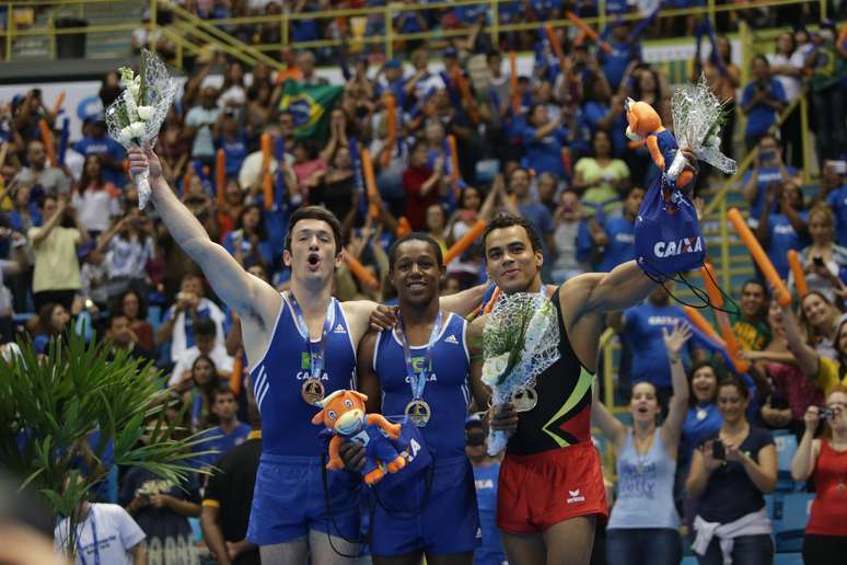 Angelo não foi o único brasileiro a subir no pódio do ginásio do Ibirapuera na prova do salto masculino. Diego Hypólito ficou com a média de 14,837 e terminou com a medalha de bronze. O ginasta quase não entrou na competição por conta de dores nas costas, mas superou o problema e conseguiu um ótimo resultado.