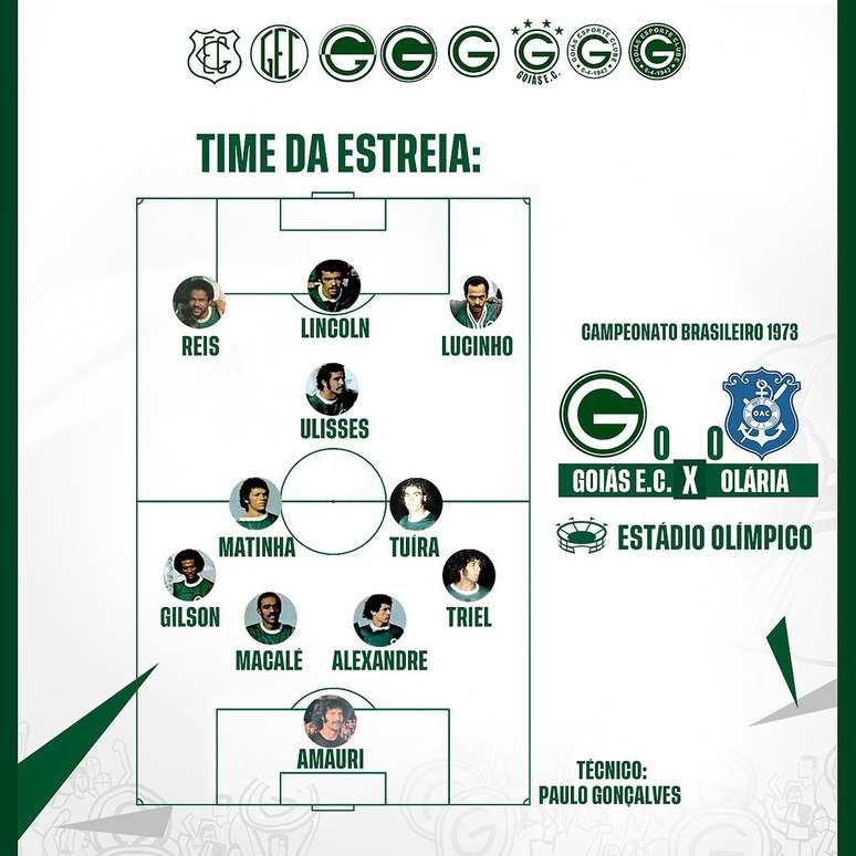 No dia 26 de agosto de 1973 o Goiás fazia sua estreia no Campeonato Brasileiro, tornando-se a primeira equipe do estado a disputar o certame nacional. Neste sábado (26), exatos 50 anos depois do duelo contra o Olaria, que foi disputado no Estádio Olímpico Pedro Ludovico Teixeira e terminou empatado em 0 a 0, o time esmeraldino fará uma série de homenagens aos personagens que participaram desse episódio.
