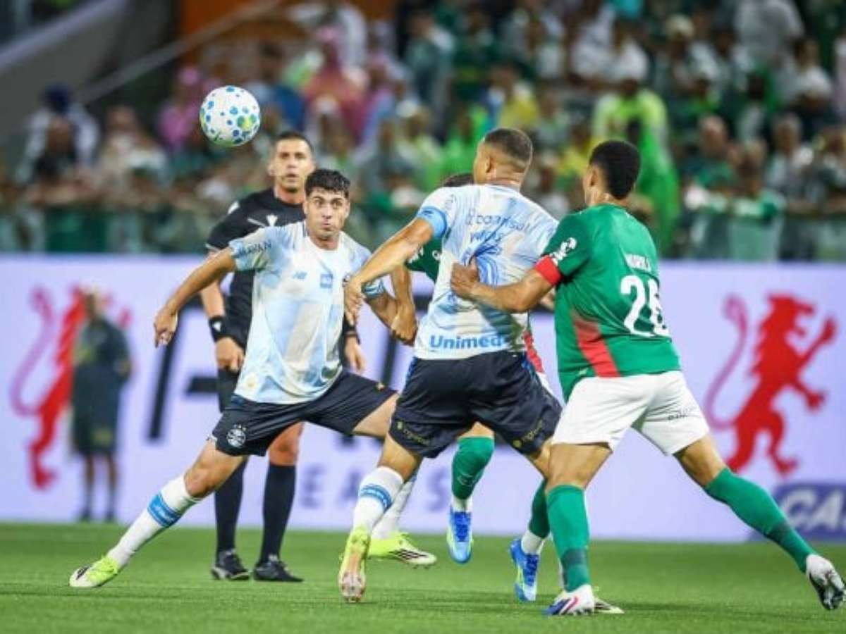 Antes disso, o Grêmio já havia protestado contra a não marcação de um pênalti em possível empurrão de Giay sobre Amuzu. O juiz considerou que não houve intensidade suficiente na carga e mandou o jogo seguir. Decisões da arbitragem irritam jogadores de Palmeiras e Grêmio na Arena Barueri