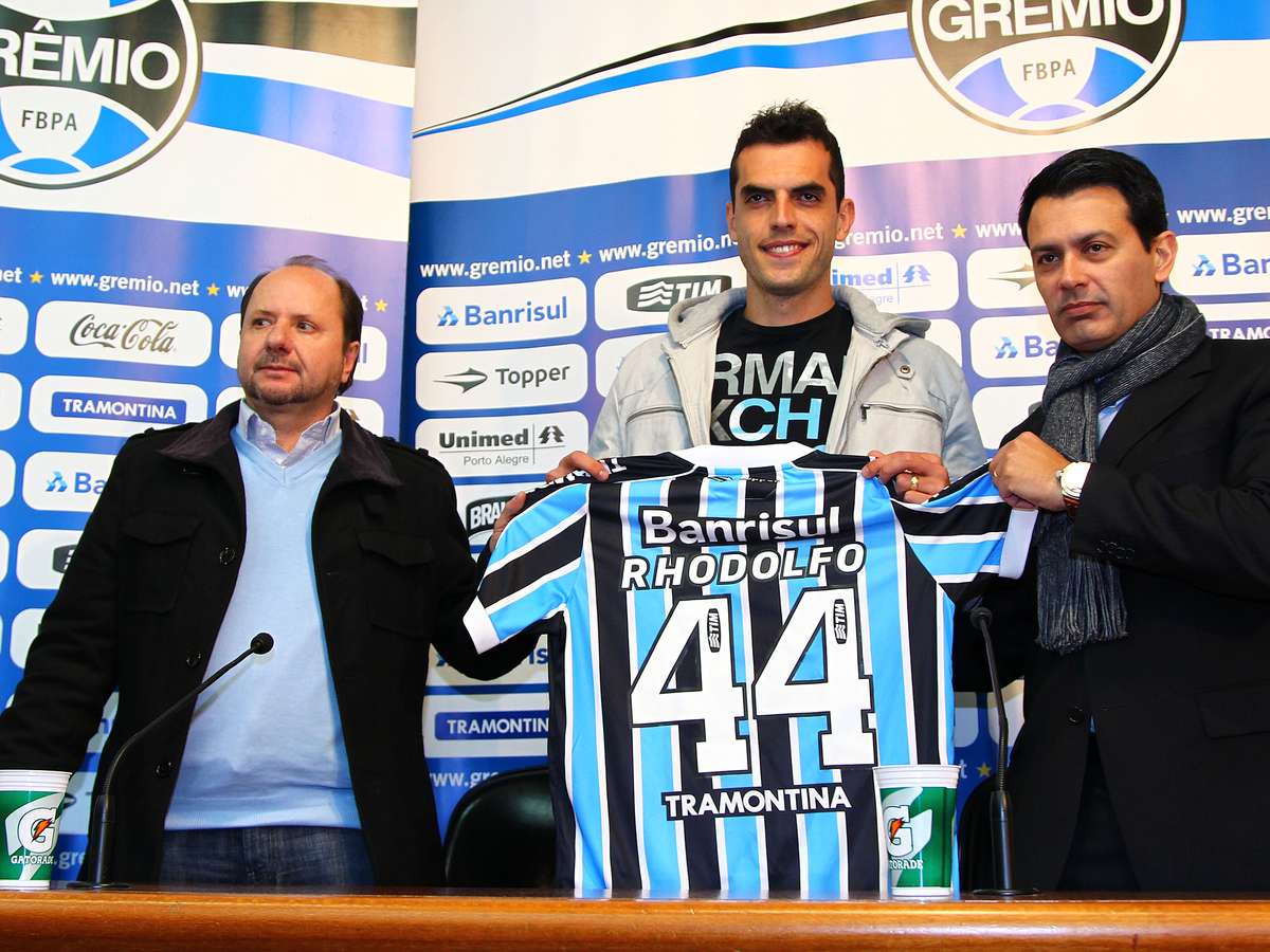 PUBLICIDADE Capa Esportes Futebol Grêmio Grêmio Favoritar Time Times Selecione o time para ver as notícias Em apresentação no Grêmio, zagueiro Rhodolfo se diz "pronto para jogar" Compartilhar O Grêmio apresentou, nesta segunda-feira, o zagueiro Rhodolfo, que chega do São Paulo por empréstimo; atleta estava desgastado na equipe tricolor Foto: Lucas Uebel/Grêmio / Divulgação O Grêmio apresentou, nesta segunda-feira, o zagueiro Rhodolfo, que chega do São Paulo por empréstimo; atleta estava desgastado na equipe tricolor Foto: Lucas Uebel/Grêmio / Divulgação Ex-são-paulino já se colocou à disposição do técnico Renato Gaúcho para a próxima partida do Grêmio Foto: Lucas Uebel/Grêmio / Divulgação Novo reforço do Grêmio vem por empréstimo por um ano, com direito a renovação por mais seis meses Foto: Lucas Uebel/Grêmio / Divulgação Atleta disputará posição com zagueiros do elenco gremista, mas chega ao Sul bem cotado Foto: Lucas Uebel/Grêmio / Divulgação Compartilhar Publicidade Compartilhar TAGS Grêmio Brasileiro Série A Esportes Futebol Publicidade