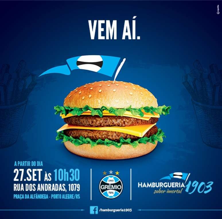 Por meio de sua página no Facebook, o clube gaúcho postou uma foto promocional, com a imagem de um lanche e as informações do evento de abertura do estabelecimento. Ele ocorrerá neste sábado, às 10h30 (de Brasília), na Rua dos Andradas, número 1079, em Porto Alegre.