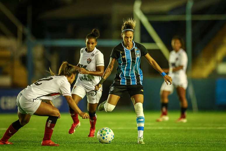 O Grêmio não deu chances ao azar e venceu o Vitória por 3 a 0 na tarde desta sexta-feira (3), em duelo válido pela 6ª rodada do Campeonato Brasileiro Feminino. Com o resultado, o Tricolor Gaúcho chega aos sete pontos e sobe para a 12ª colocação, iniciando uma trajetória de recuperação para encostar no G8, que hoje é fechado pelo Santos com nove pontos. A vitória afunda ainda mais o time baiano, que permanece na lanterna da competição com apenas um ponto conquistado e um saldo negativo de 14 gols. Os gols da partida foram marcados por Yamila Rodríguez, que abriu o placar de cabeça, e pela zagueira Mayerli Rodríguez, que balançou as redes duas vezes para selar a goleada.