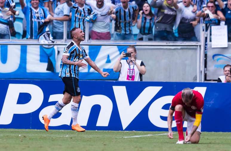 A partir dos 30 minutos, a gritaria e os conselhos de Renato Gaúcho à beira do campo surtiram efeito e o Grêmio melhorou na partida, tomando a iniciativa das jogadas, mas parando no meio-campo congestionado do adversário. Todo o esquema de Odair Hellmann caiu por terra aos 48 minutos quando, em bela troca de passes, Ramiro recebeu de Luan e cruzou rasteiro encontrando Everton no segundo pau, que apenas empurrou para as redes.