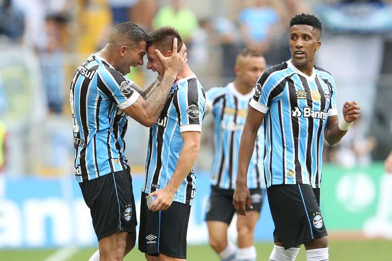 O gesto de Renato Gaúcho após o terceiro gol indicou a postura da sua equipe nos minutos finais. Pedindo para o time ficar com a bola, o treinador ainda viu novamente Marcelo Grohe operar um milagre. Dourado recebeu dentro da área e bateu firme na frente do goleiro, que se jogou para espalmar.