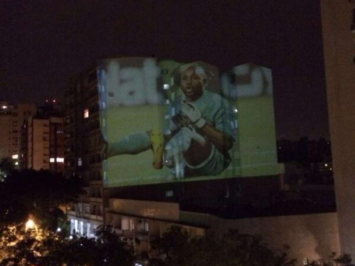 Gremistas compartilham projeção de Kidiaba e festejam "Mazembe Day"