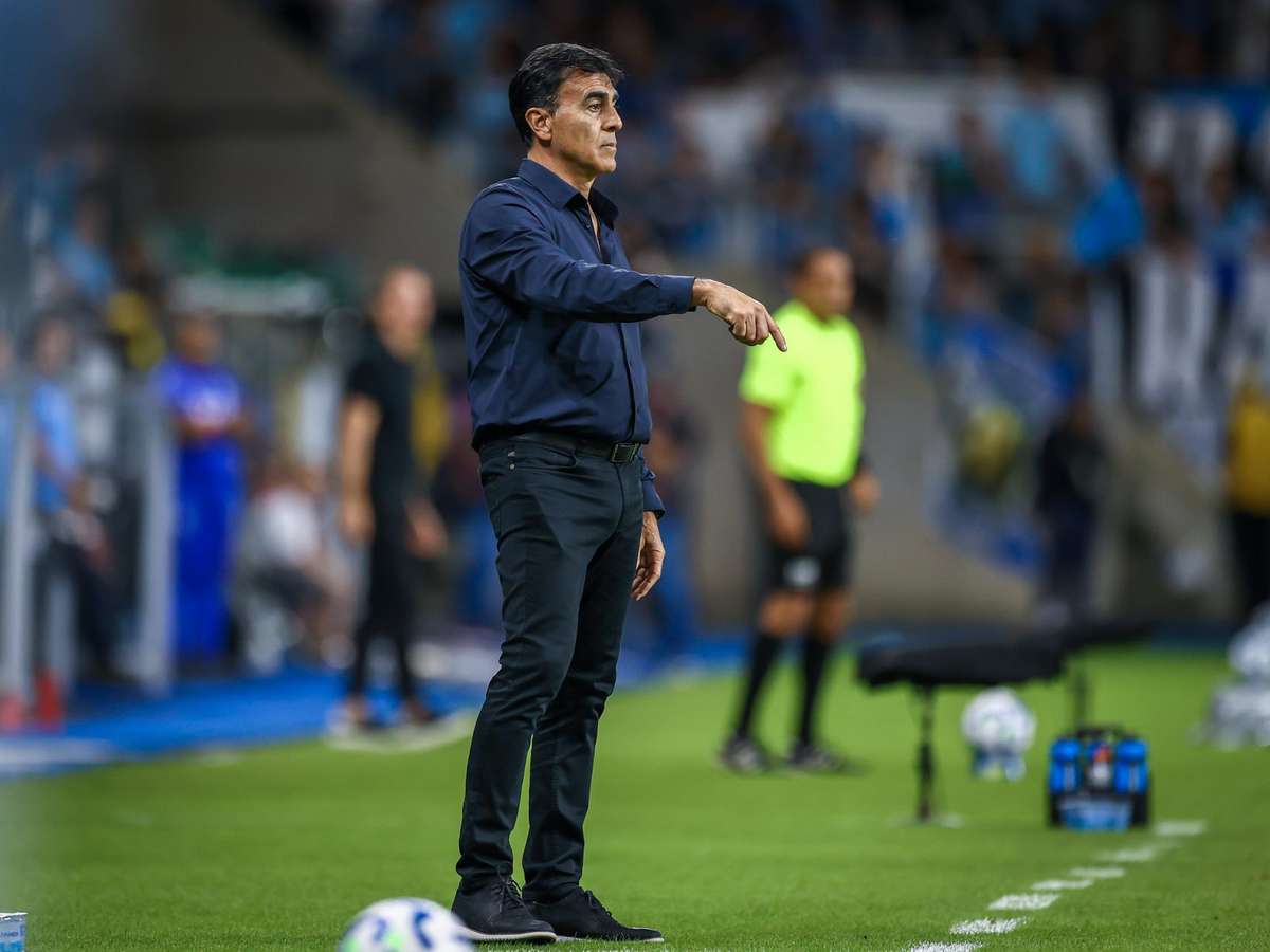 Gustavo Quinteros reclama de pênalti não marcado para o Grêmio