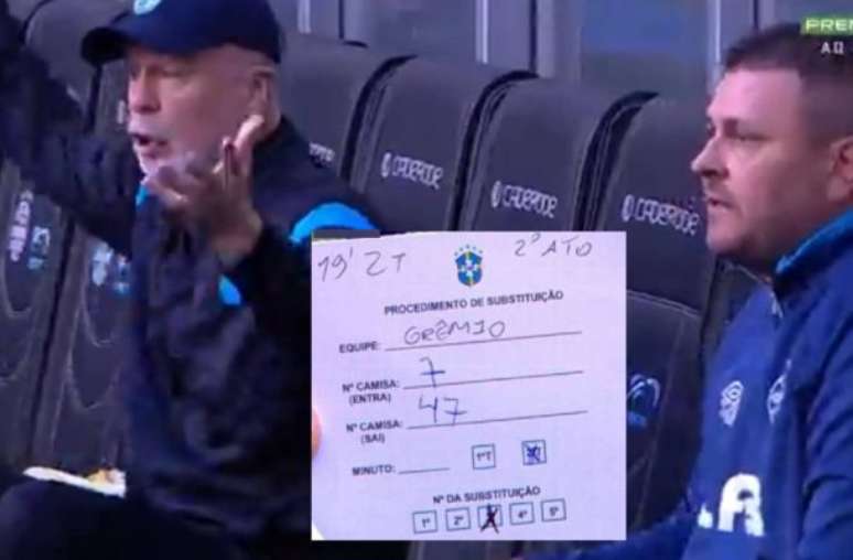 A transmissão do Premiere exibiu o papel entregue à arbitragem, com os números trocados. Assim, Pavón (7) entrou no lugar de Alysson (47). O número não é nem parecido com o da camisa de João Pedro (18). Mais tarde, em coletiva, Mano Menezes admitiu a falha. "Era para sair o João Pedro. A arbitragem não errou, o problema foi nosso, de comunicação", explicou o treinador.