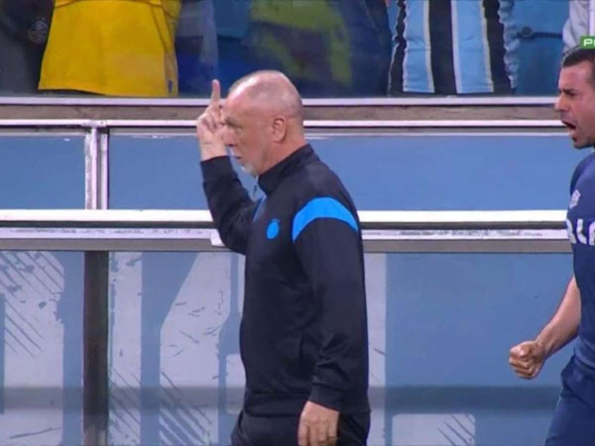 Após sair atrás no placar, o Tricolor buscou o empate ainda no primeiro tempo, aos 47 minutos, com gol de Amuzu. Durante a comemoração do elenco gremista, o treinador chamou atenção à beira de campo ao apontar para a arquibancada e mostrar o dedo do meio.