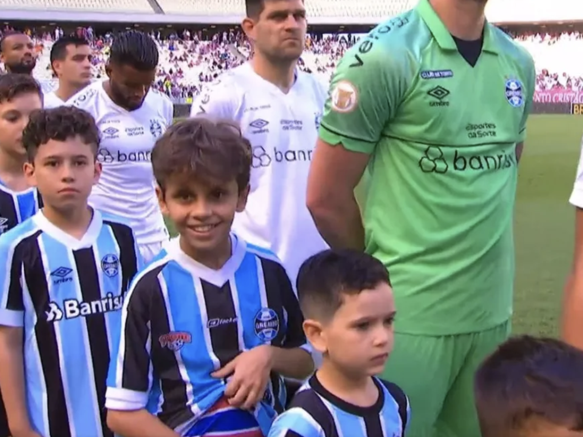 Menino entra com time do Grêmio, mas mostra camisa do Fortaleza; veja