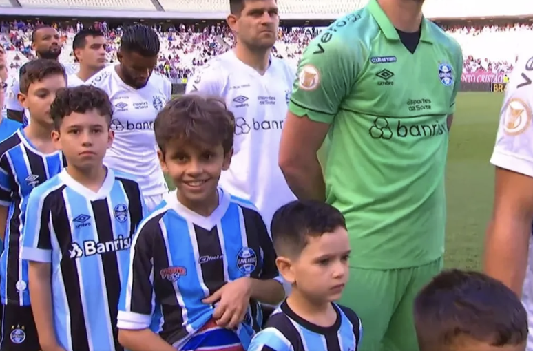 A cena aconteceu quando o menino estava ao lado do goleiro Gabriel Grando durante a execução do hino nacional no gramado do Castelão, no Ceará.