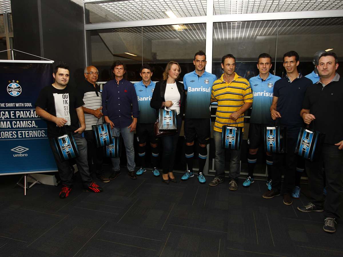 O evento de apresentação do uniforme também teve a presença da Musa do Grêmio de 2015, Julia Lemos, do presidente Romildo Bolzan e de um grupo de sócios que foi contemplado para conhecer de perto o uniforme.
