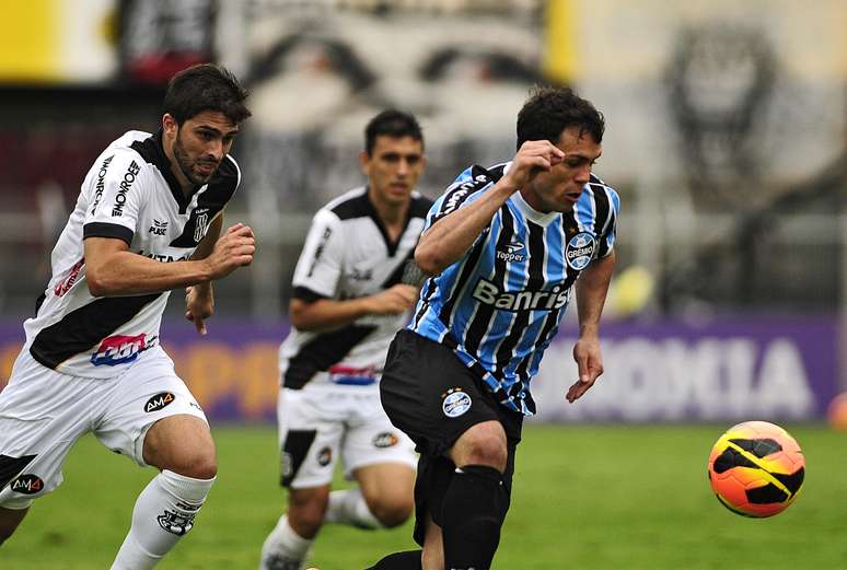 Especialista em se defender e jogar no contra-ataque, o Grêmio provou do próprio veneno no começo do jogo. Aos 13min, o time gaúcho atacou com tudo, e Kleber só não marcou porque Edson Bastos fez ótima defesa. No lance seguinte veio a resposta mais eficiente da Ponte: Adrianinho lançou para Adailton, que disparou em velocidade e chutou cruzado com sucesso.