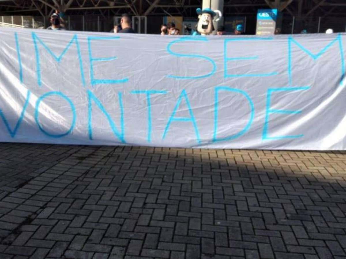 Duas faixas foram estendidas na frente do estádio: "time sem vontade" e "cadê o futebol do Grêmio?". Além disso, os torcedores cantaram que o time era "sem vergonha" e "tem que ter raça para jogar no Imortal", em referência ao apelido do clube.