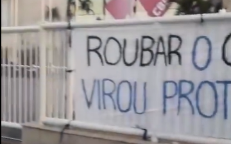 Durante o ato, os torcedores exibiram faixas com frases como "Roubar o Grêmio virou protocolo" e espalharam notas de dinheiro falsas com o rosto de alguns árbitros, em protesto
