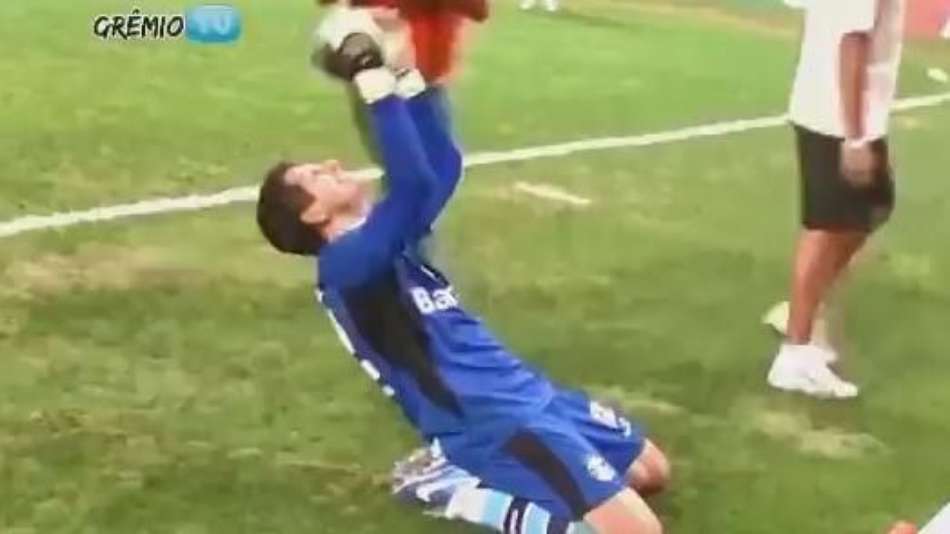 Marcelo Grohe, que completou 28 anos nessa semana, foi um dos grandes destaques do Grêmio em 2014; o goleiro chegou à marca de 803 minutos sem tomar no gol no Campeonato Brasileiro e ajudou o time gaúcho a ser a defesa menos vazada, com apenas 24 gols sofridos - imagens Grêmio TV