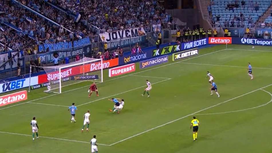 O jogo entre Grêmio e Palmeiras terminou em 3 a 2 para o tricolor gaúcho nesta terça-feira, 25. Após revisão, Sávio Pereira Sampaio retira o cartão amarelo e aponta o vermelho para o lateral do Palmeiras.
