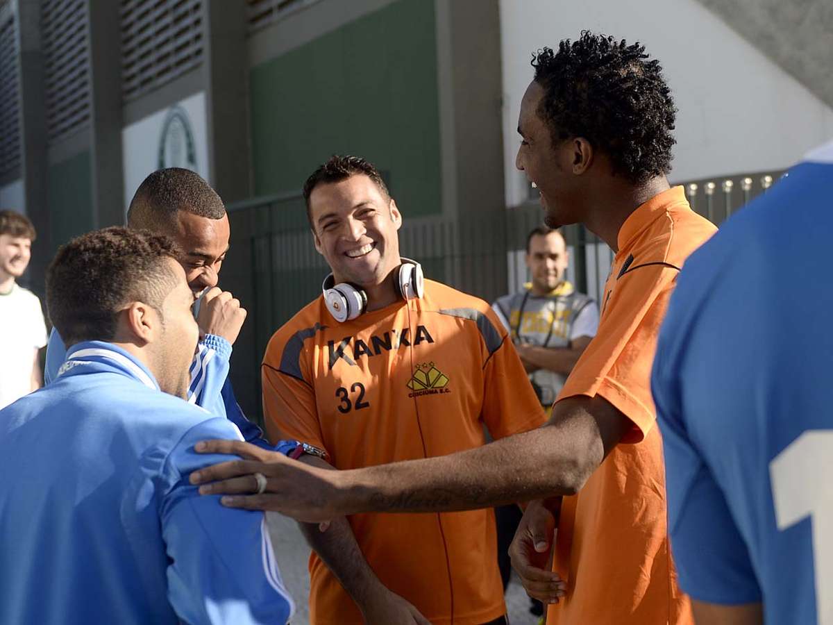 Ex-palmeiras, Wellington Paulista brinca com criança em treino do Criciúma em São Paulo