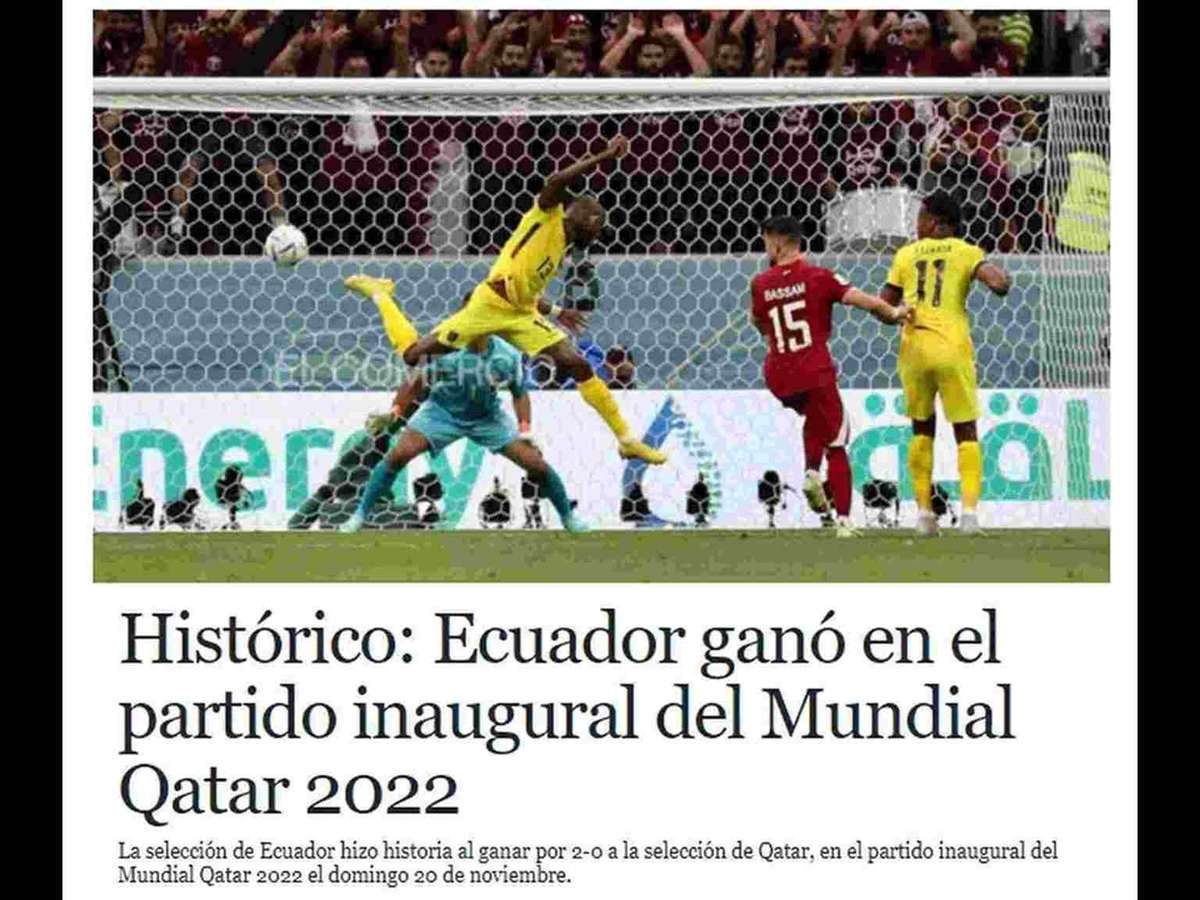 Depois de muita espera, finalmente a bola rolou para Catar e Equador, jogo inaugural da Copa do Mundo de 2022. Dada a expectativa, não é exagero dizer que o Mundo parou para acompanhar e repercutir a vitória fácil da seleção Sul-Americana. No Equador, 'El Comercio' destacou deu destaque à partida logo em sua página inicial, atribuindo ao jogo o rótulo de 'histórico'. A seguir, veja como a imprensa internacional reagiu ao jogo de abertura da Copa do Mundo.