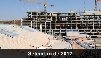 Palco da abertura da Copa do Mundo de 2014, a Arena Corinthians fechou o mês de agosto com 48,75% das obras conclusas. O Terra preparou fotos panorâmicas para fazer o acompanhamento da construção do estádio, localizado no bairro de Itaquera, em São Paulo, que tem previsão de entrega para dezembro de 2013. Veja: