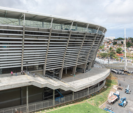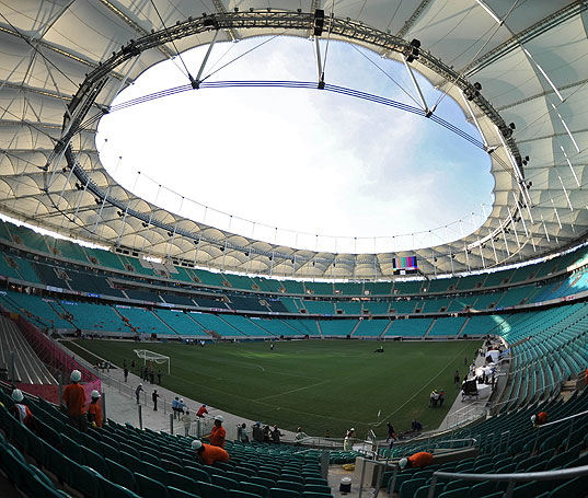 O estádio, porém, passou por um momento extremamente desagradável no final de maio, quando parte da cobertura rompeu após uma chuva. A concessionária que administra a arena acusou “falha humana” para o acontecimento. A Fonte Nova receberá três jogos da Copa das Confederações (um da Seleção Brasileira) e seis da Copa do Mundo de 2014.
