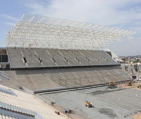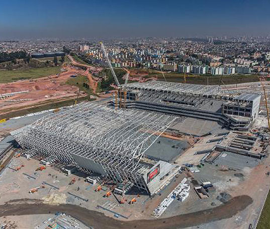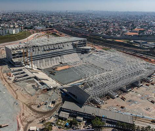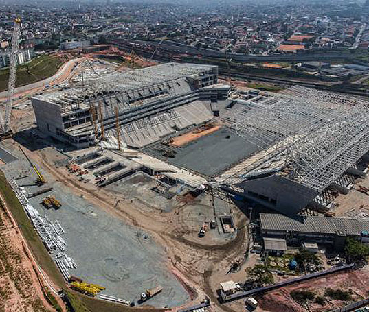 Apesar de contar com críticas persistentes da Fifa, o Corinthians e a Odebrecht confiam em entregar o estádio no final do ano. Perto de chegar a quatro quintos de sua construção, a Arena Corinthians está em estágio avançado nos trabalhos da cobertura e monta a fachada da futura casa corintiana.