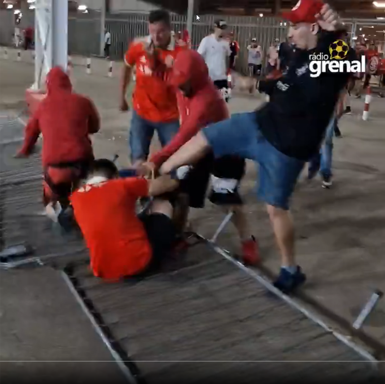 No vídeo acima, é possível ver um grupo agredindo um torcedor. Até o momento, ainda não se sabe o que provocou essa confusão.