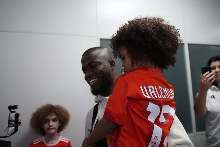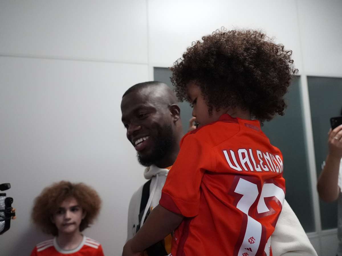 Antes de encontrar a torcida, contudo, Enner Valencia se reuniu com a família. Autorizada pelo aeroporto, a mulher e os filhos do jogador puderam ultrapassar a barreira para abraçar o centroavante. As crianças, aliás, chamaram a atenção pelo uso de camisas do Colorado e de tranças vermelhas nos cabelos.