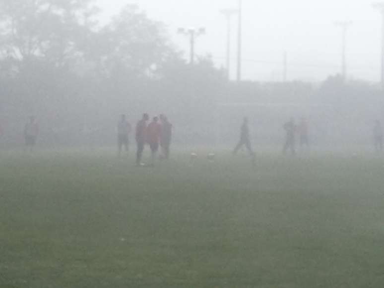 A forte neblina que atingiu Porto Alegre na manhã desta quarta-feira por pouco não atrapalhou os planos do técnico Dunga. No treino realizado no CT do Parque Gigante, que fica às margens do Rio Guaíba, o treinador colorado comandou um treino técnico onde era mais fácil identificar os jogadores pela voz do que pelo visual.