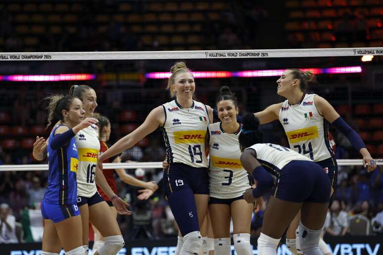 A seleção italiana feminina de vôlei, atual campeã Olímpica, atropelou a Alemanha neste sábado (30) e avançou às quartas de final do Campeonato Europeu da modalidade, na Tailândia.