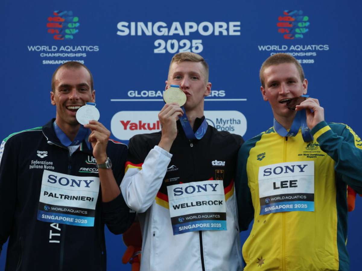 Pódio feminino teve Ginevra Taddeucci (prata), Moesha Johnson (ouro) e Lisa Pou (bronze)Essa é a terceira medalha mundial de Taddeucci (um ouro, uma prata e um bronze), que também tem um bronze olímpico na maratona aquática de Paris 2024. "Essa medalha coroa toda uma carreira, estou feliz, ainda que tenha sido difícil competir aqui, a água estava muito quente", afirmou a atleta "azzurra".