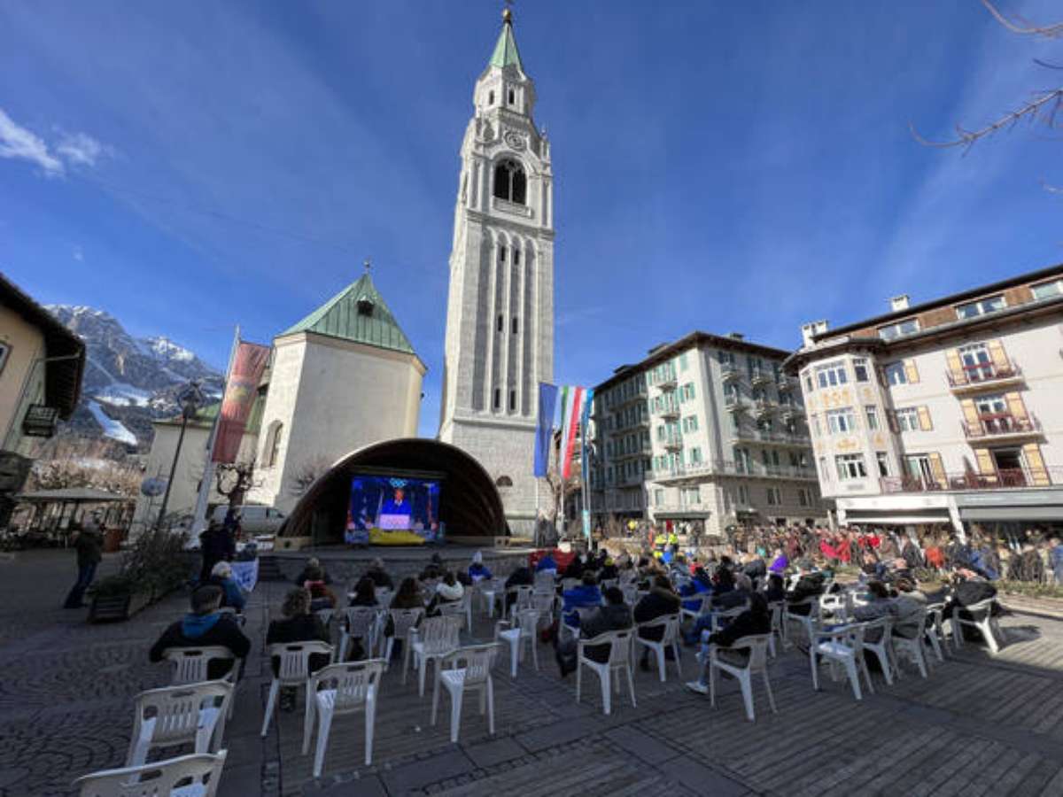 Para marcar a data, a bandeira olímpica foi hasteada no centro das duas cidades - em Milão, pelo pelotão de honra da polícia local, e em Cortina, pelos patinadores Sara Conti, Niccolò Macii e Rebecca Ghilardi.