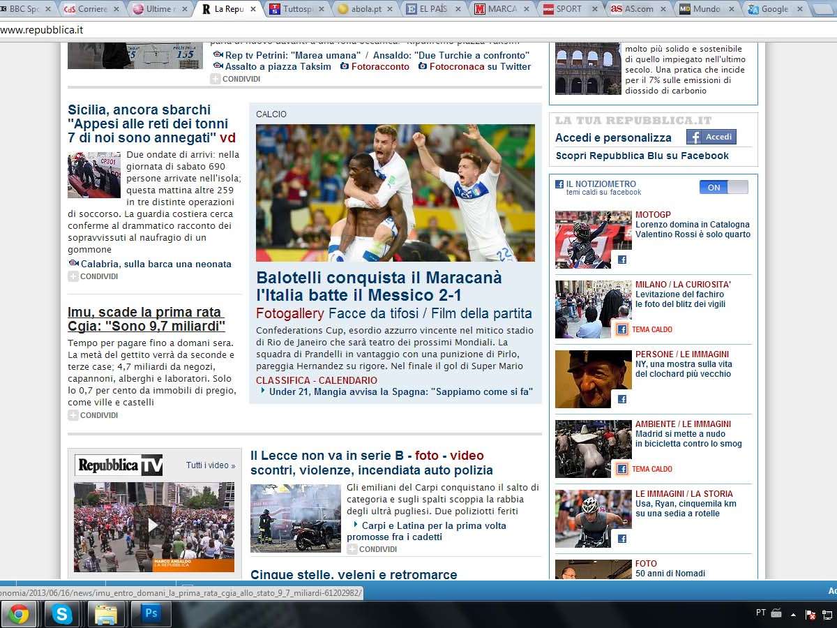 "Balotelli conquista o Maracanã, e a Itália bate o México por 2 a 1", estampou a edição digital do jornal La Repubblica, exaltando o "gol do Super Mario" no final do confronto. O jogador tem temperamento polêmico e agora volta a se destacar positivamente, após ser expulso no empate por 0 a 0 com a República Checa em 7 de junho, pelas Eliminatórias da Copa de 2014.