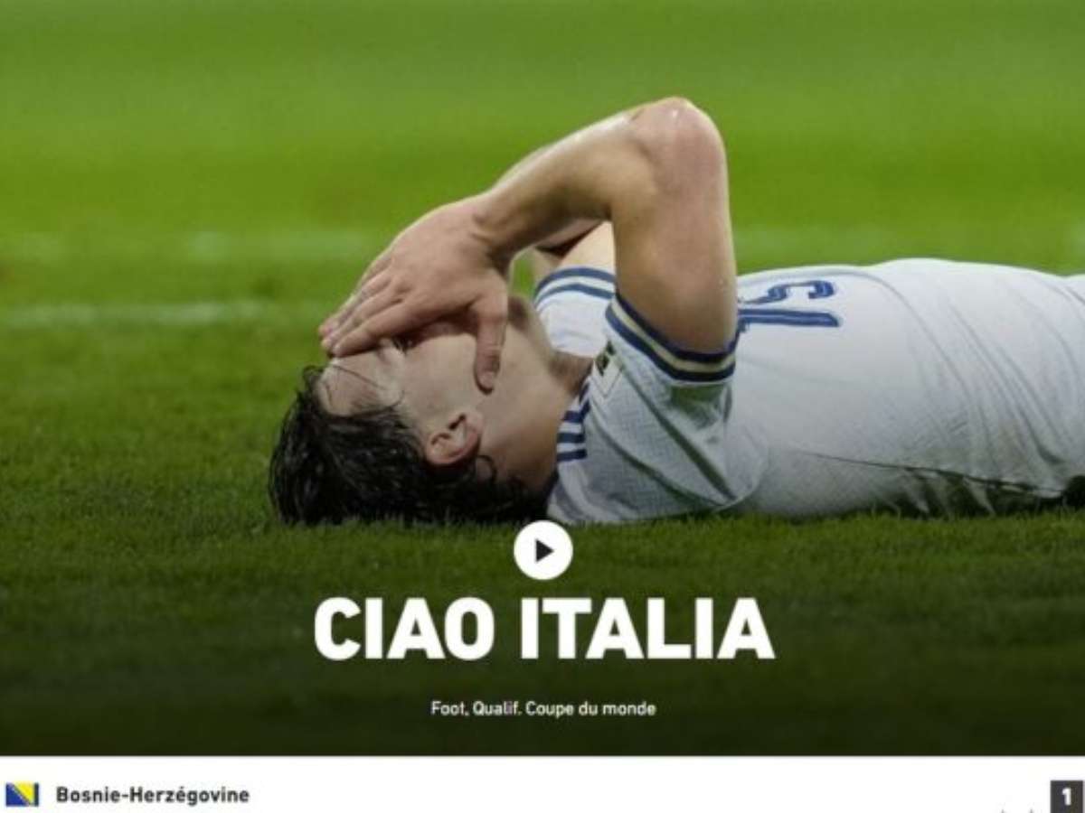 A imprensa internacional deu grande destaque para a eliminação da Itália para a fase de grupos da Copa do Mundo. Todos lembraram que, pela terceira vez seguida, a Azzurra é uma tragédia em campeonatos mundiais, caindo nas eliminatórias. Foi assim em 2012 (Suécia), 2022 (Macedônia do Norte) e agora, em 2026 (Bósnia). Veja abaixo o que três dos principais jornais italianos falaram, e também o L'Équipe (França), Marca (Espanha) e A Bola (Portugal).