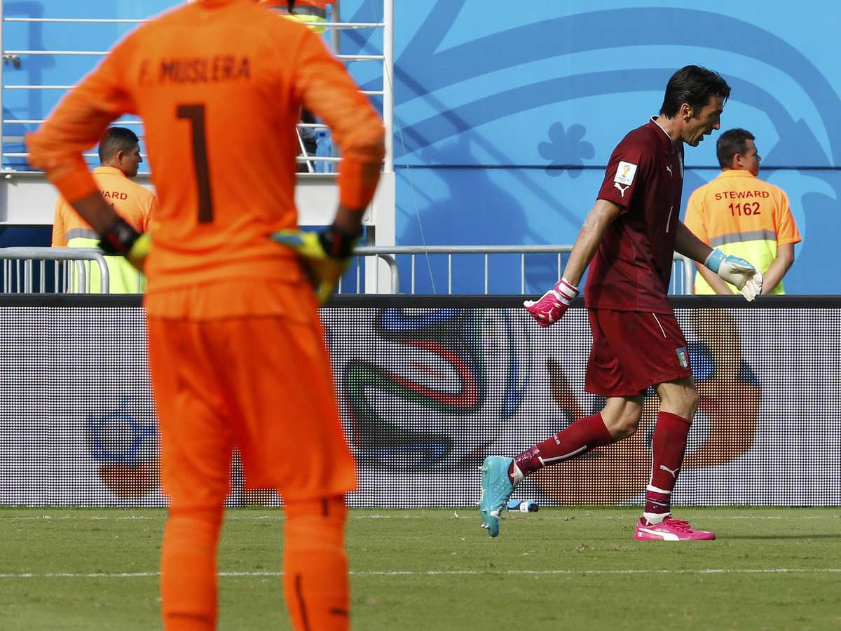 Italiano Buffon volta à grande área italiana após tentar fazer gol de empate contra o Uruguai
