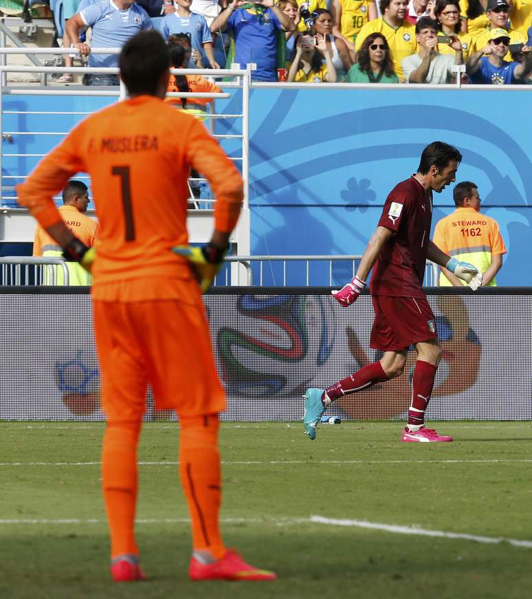 Buffon não consegue evitar gol uruguaio, que desclassifica a Itália