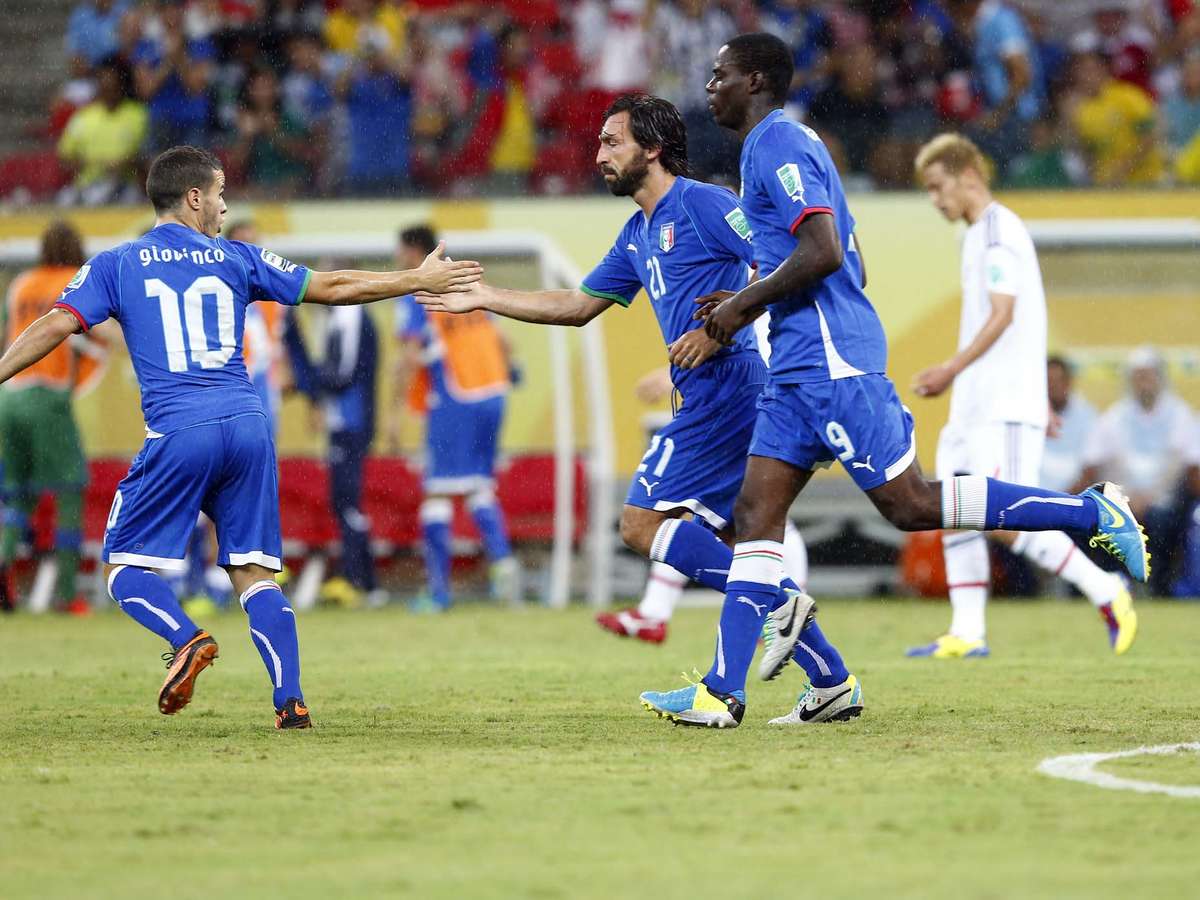 Pirlo e Balotelli comemoram o segundo gol da Itália