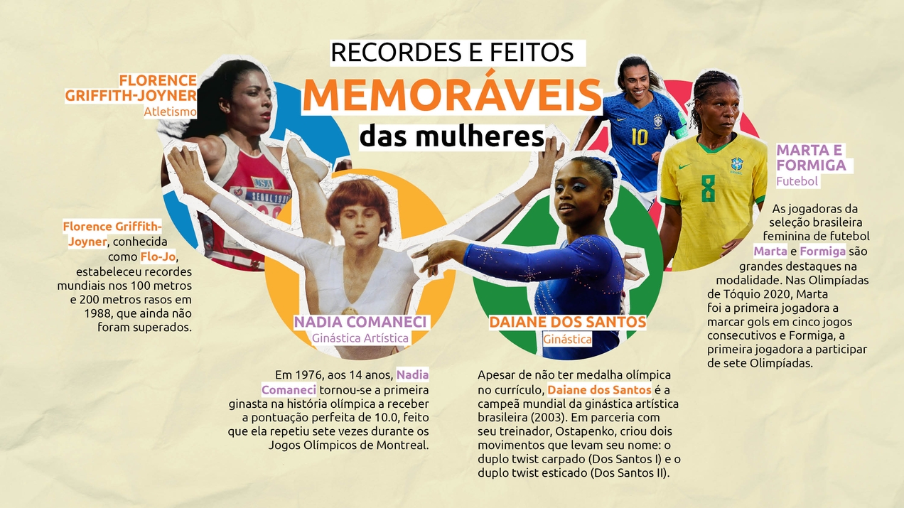 Rebeca foi a primeira brasileira a conquistar duas medalhas numa mesma edição dos Jogos Olímpicos (Tóquio 2021). Rayssa, ou a “fadinha”, foi a atleta brasileira mais jovem a conquistar uma medalha, também nos Jogos de Tóquio, quando tinha apenas 13 anos. Elas também estão inspirando e abrindo oportunidades para que outras garotas possam sonhar com a carreira esportiva.