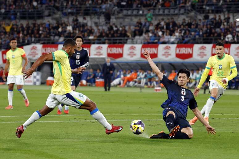 Já aos 31, Gabriel Martinelli foi acionado na área com uma cavadinha de Lucas Paquetá e ampliou o placar. A partida parecia sob controle, mas, logo no início do segundo tempo, Fabrício Bruno errou um passe na defesa e deu a bola no pé de Takumi Minamino, que marcou e recolocou o Japão no jogo.