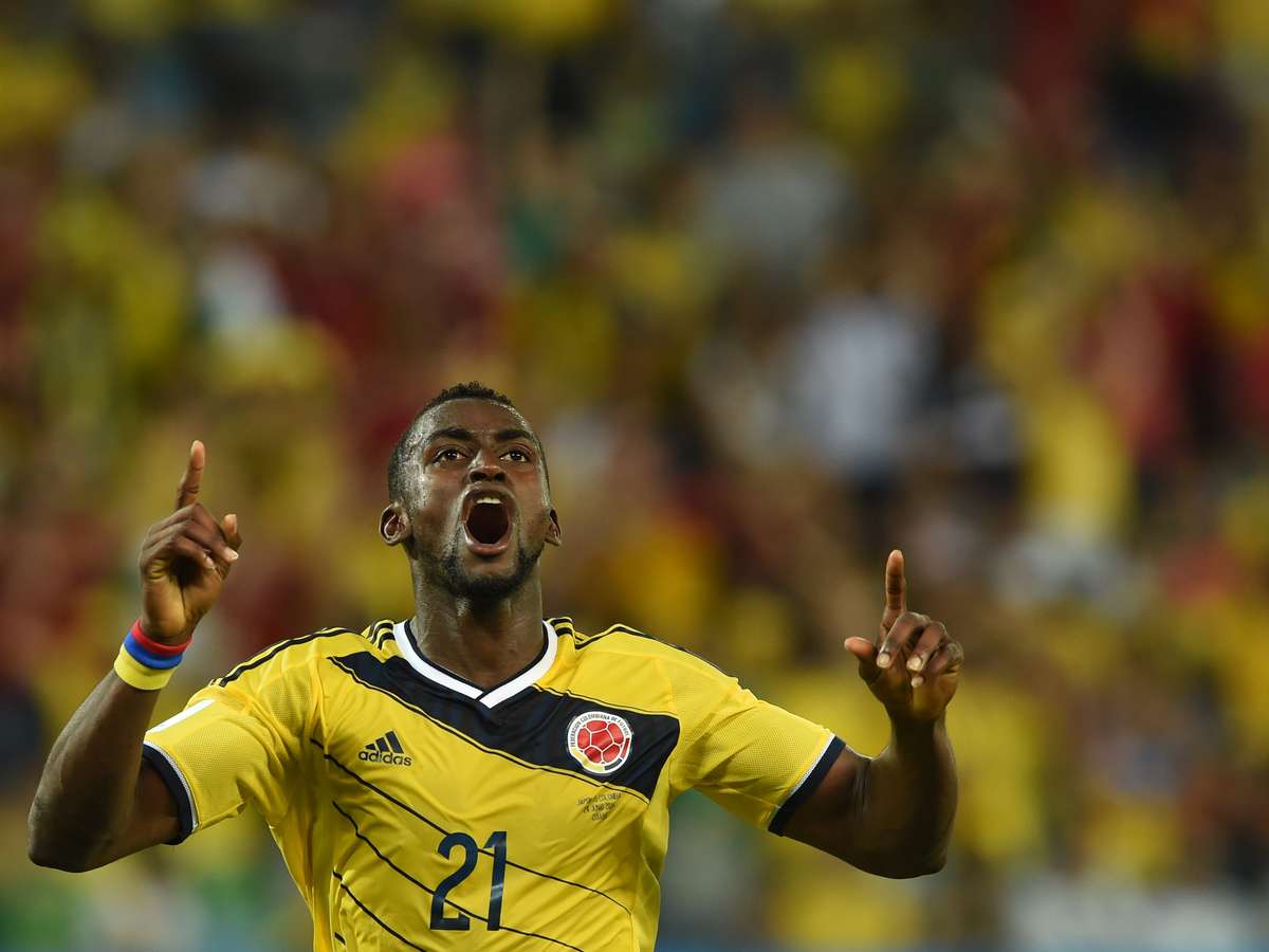 Autor de dois gols colombianos na vitória por 4 a 2 sobre o Japão, Martínez vibra na Arena Pantanal, em Cuiabá. A equipe sul-americana termina a primeira fase da Copa do Mundo com 100% de aproveitamento e pega o Uruguai nas oitavas de final.