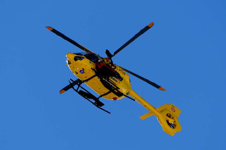 Ela foi rapidamente cercada por vários médicos e auxiliares antes que um helicóptero de resgate alpino Falco 2 amarelo chegasse e a levasse em uma maca laranja.