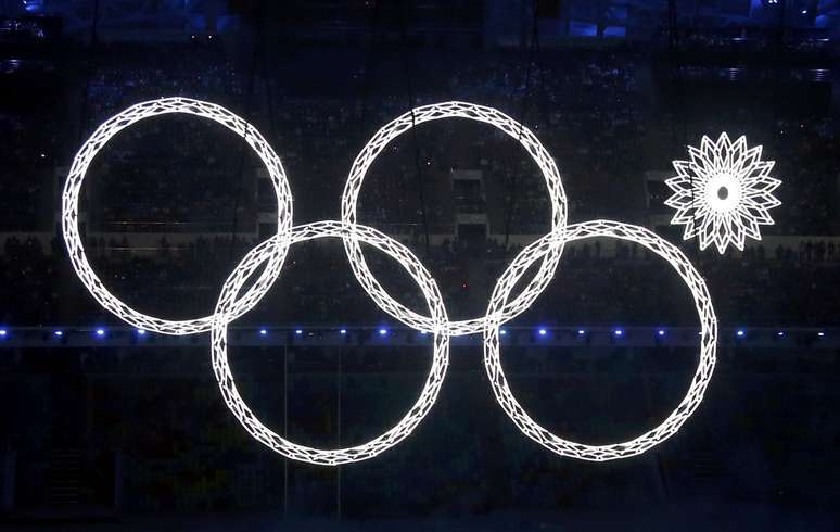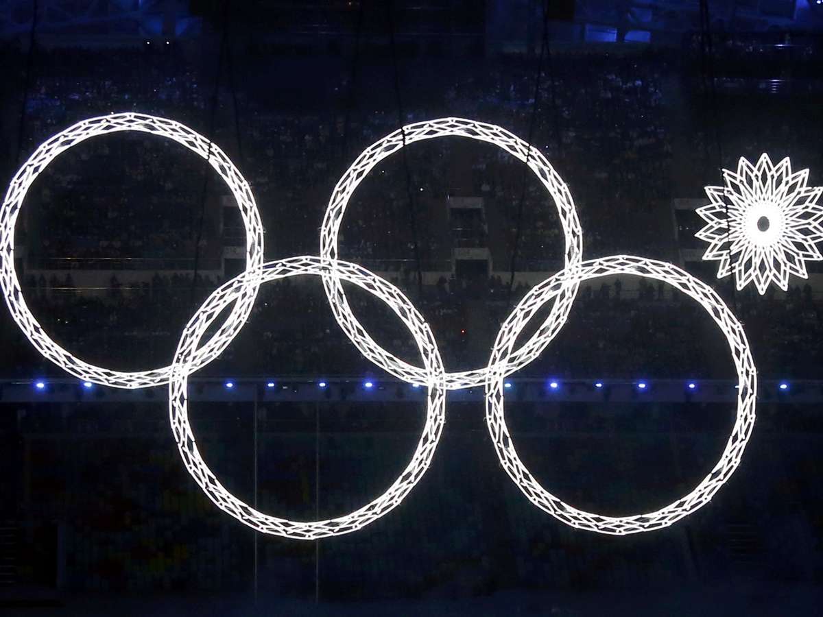 Aparecimento do anel olímpico teve gafe: um dos flocos de neve não abriu e deixou o símbolo sem uns dos anéis