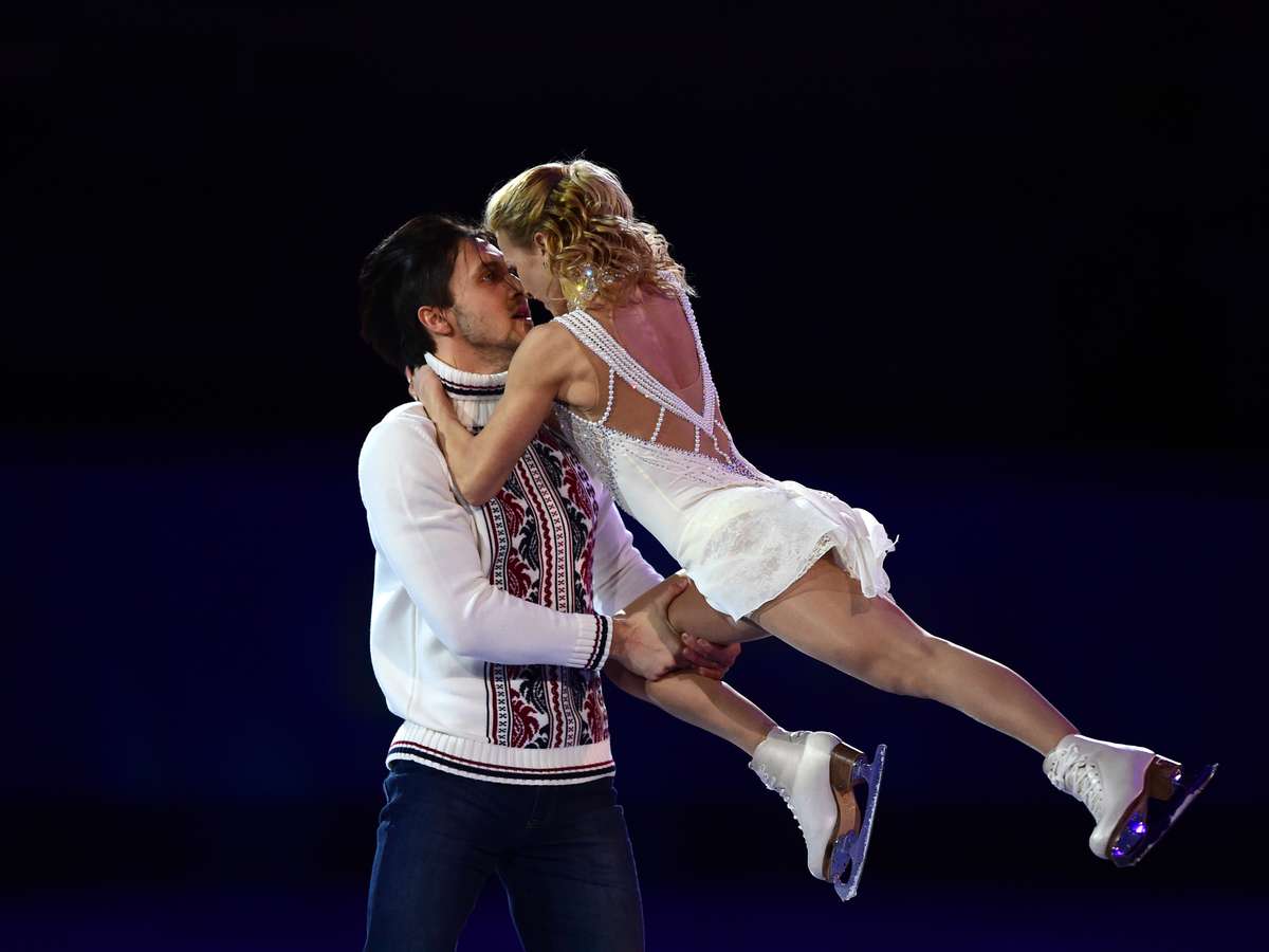 Alemão Daniel Wende reage após sua parceira Maylin Wende cair durante apresentação da patinação artística