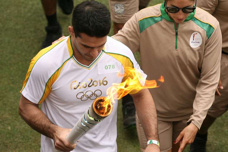 Já no Emissário, a tocha foi levada à Vila Belmiro, casa do Peixe. Por lá, cerca de mil crianças da rede municipal e as equipes de base do alvinegro praiano puderam assistir o ex-jogador de vôlei Negrelli passar a tocha ao judoca Leandro Guilheiro, bronze nos Jogos de Atenas (2004) e Pequim (2008).