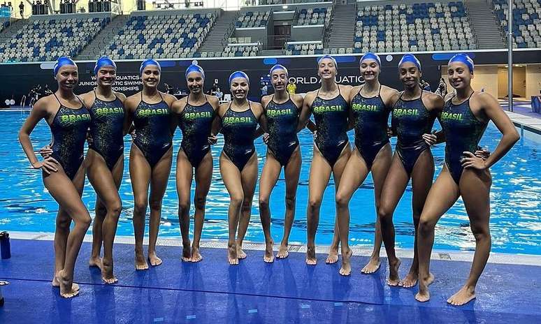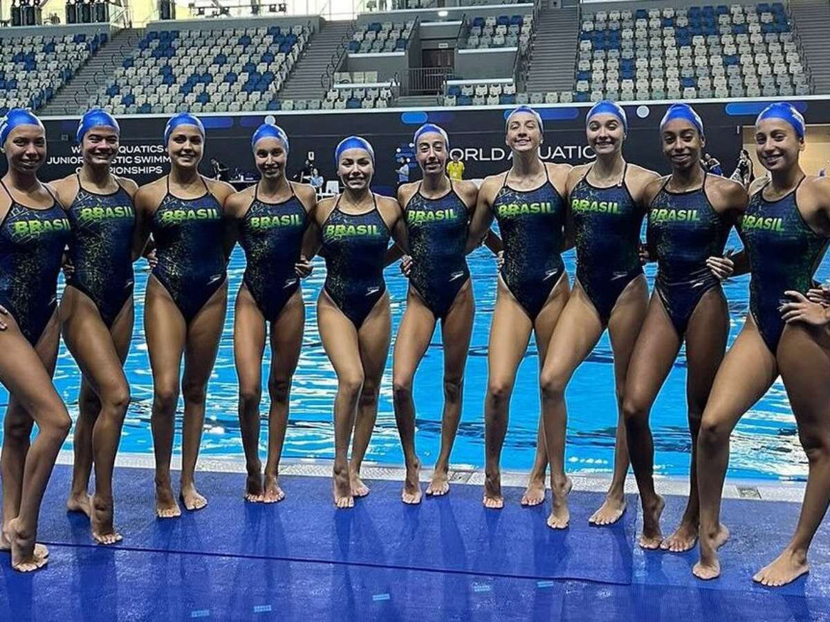 Para a disputa em equipes, o Brasil contou com a seguinte formação: Iris Cano, Laura Castagna, Eduarda Mattos, Marina Postal, Juliana Santolin, Hannah Sukmann, Alice Tenorio e Julia Tomelin. O time brasileiro teve 30.4000 pontos na dificuldade, 78.0500 na impressão artística e mais 111.4905 de execução, somando 229.5405. A pontuação, no entanto, ficou bastante abaixo em relação ao primeiro lugar. A equipe da China levou o ouro com 305.3328 pontos. Em seguida veio Japão (303.8268) e Espanha (299.3034).