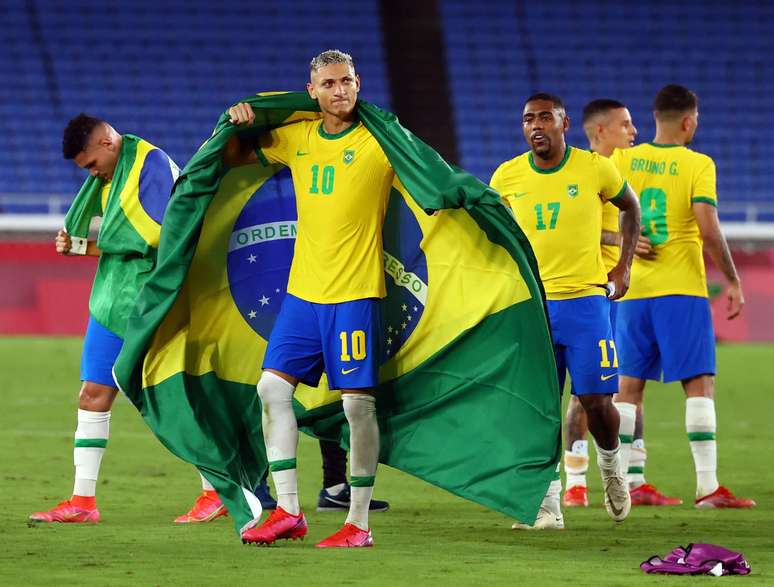BRASIL: Santos; Daniel Alves, Nino, Diego Carlos e Guilherme Arana; Douglas Luiz, Bruno Guimarães, Claudinho (Reinier) e Antony (Gabriel Menino); Matheus Cunha (Malcom) e Richarlison (Paulinho)