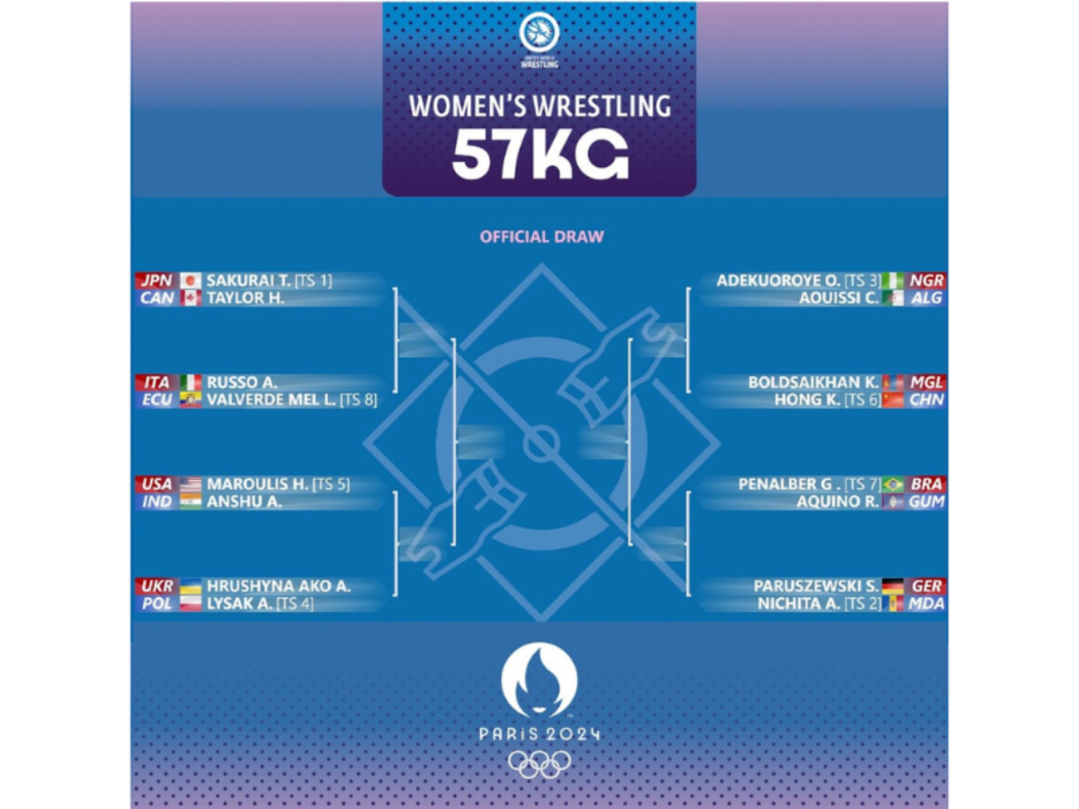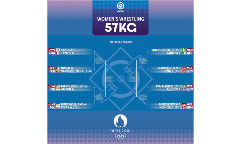 Giullia Penalber conheceu na manhã desta quarta-feira (7) a adversária que vai enfrentar na estreia do wrestling brasileiro nos Jogos Olímpicos de Paris-2024. A brasileira compete na categoria estilo livre feminino 57kg e faz sua primeira luta contra Rckaela Aquino, de Guam, território localizado na Micronésia, na extremidade sul das Ilhas Marianas.