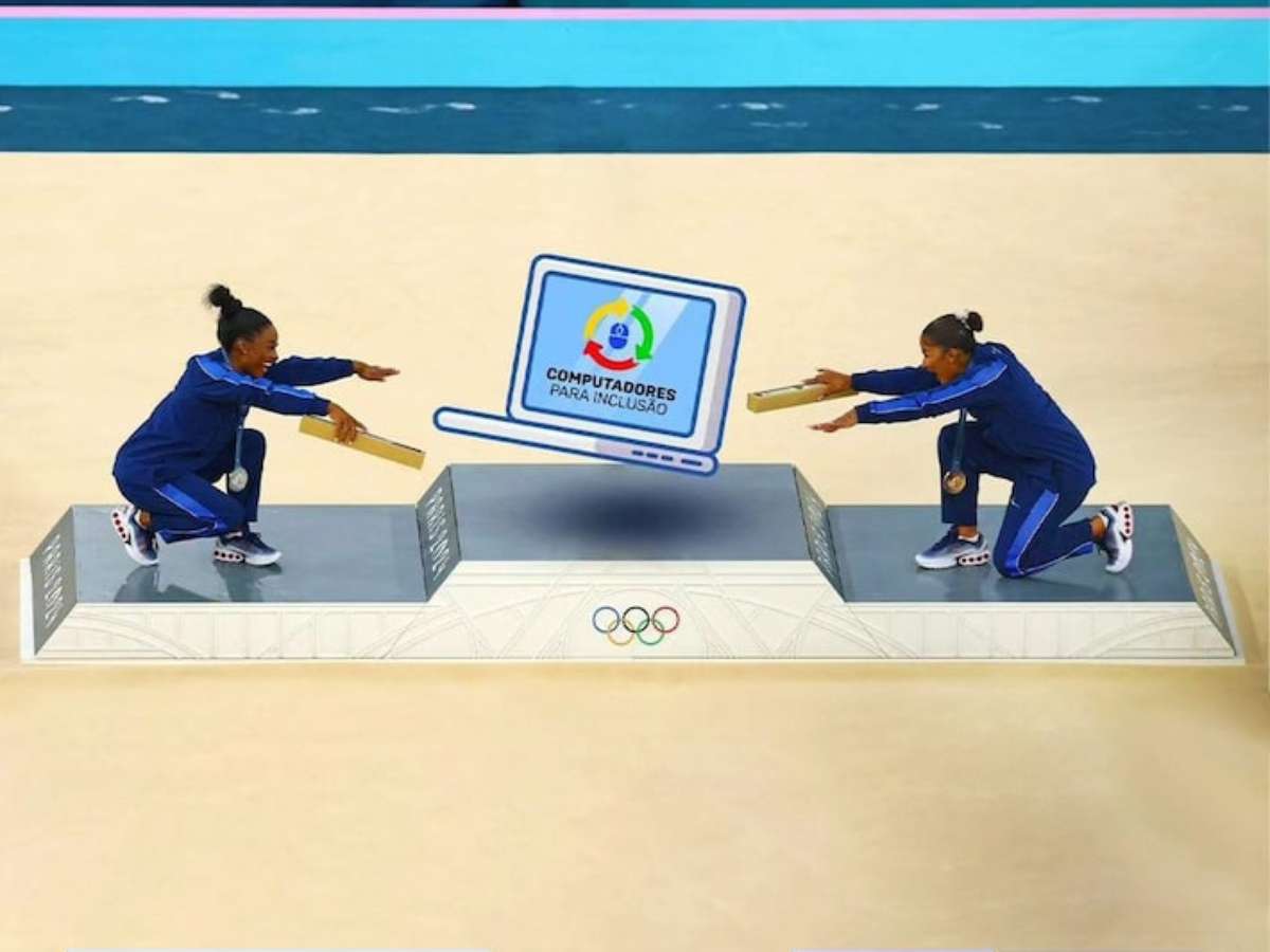 Ginasta foi excluída de foto com Simone Biles e Jordan Chiles para Ministério das Comunicações divulgar programa 'Computadores para Inclusão'; após repercussão negativa, publicação foi apagada e substituída por nova montagem. Ao 'Estadão', ministério disse que postagem 'não foi adequada'