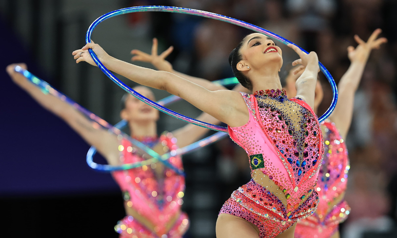 Paris - A expectativa era grande do Brasil quebrar um jejum de 20 anos e voltar a disputar a final dos conjuntos da ginástica rítmica nos Jogos Olímpicos. Com a melhor geração brasileira da modalidade, a equipe formada por Duda Arakaki, Deborah Medrado, Sofia Madeira, Victoria Borges e Nicole Pircio só não contava com o imponderável. Depois de uma boa apresentação nos cinco arcos, Victoria machucou a panturrilha no aquecimento para a série mista. Como o regulamento não permite substituições, ela foi se apresentar mesmo machucada, não conseguiu fazer todos os movimentos e a nota foi muito baixa. No final, como apenas os oito melhores se classificaram para a decisão da medalha, o nono lugar deixou o país de fora da disputa.