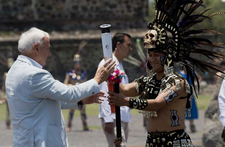A tocha dos Jogos Pan-Americanos de 2015, que serão realizados em Toronto, no Canadá, foi acesa nesta segunda-feira em um ritual cerimonial asteca conhecido como Fogo Novo, na Zona Arqueológica de Teotihuacán, no México. O evento sediado na Pirâmide do Sol, um dos pontos mais importantes da região histórica, marcou o início da caminhada da chama, que deverá percorrer cerca de 20 mil km por terra e mar durante 41 dias.